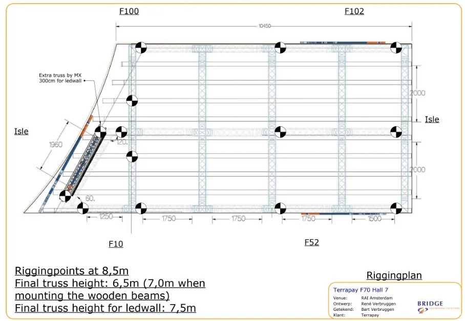 Expo-rigging encompasses all activities surrounding the installation of rigging equipment and systems for fairs, exhibitions and stage technology, for example. Literally, Expo-rigging means hanging and positioning various items such as lighting, AV equipment and decorative elements. Hanging these elements must be done effectively and safely and ultimately enhance the visual impact of your event. At Bridge EF, we are experts in expo rigging and as experienced professionals in the event industry, we understand the importance of a flawless rigging installation to make your exhibition presentation a great success. Our team of rigging experts has extensive experience and expertise to provide rigging solutions tailored to your needs and requirements. Safety is our top priority at all times. Therefore, our rigging experts are trained to ensure that all our rigging installations meet the strictest safety standards and requirements. Our technicians are familiar with European requirements and regularly operate at many Western European Exhibition venues.