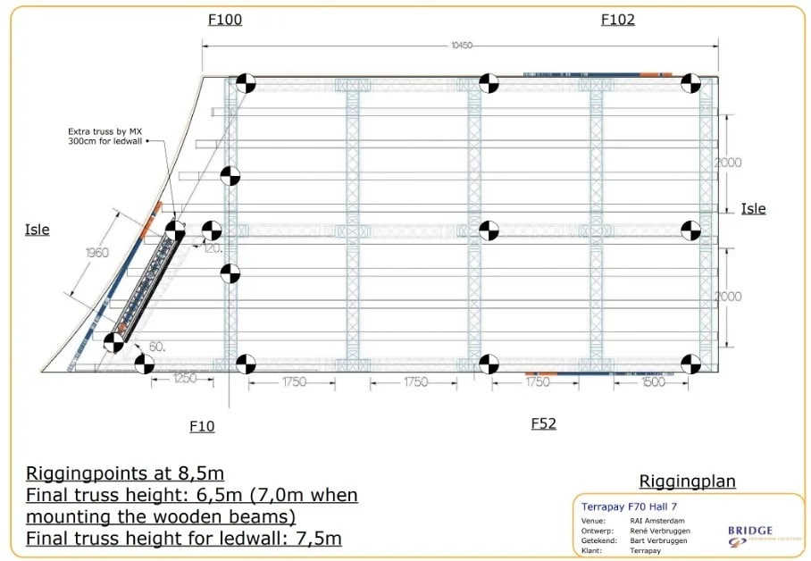 Bij Bridge EF zijn wij expert op het gebied van expo-rigging en begrijpen wij als ervaren professionals in de evenementenindustrie het belang van een vlekkeloze rigging installatie om uw beurspresentatie tot een groot succes te maken.