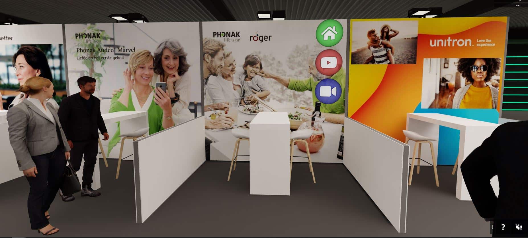 Hybride events zijn online te bezoeken zonder reistijd. Een computer en internet verbinding zijn voldoende om het online congres te bezoeken. Het online en fysieke congres ontwerpen wij gelijktijdig. In de online congres omgeving worden Call to Action buttons geplaatst zodat er ook live interactie met de stand bemanning mogelijk is. Voor uw fysieke congres omgeving realiseren wij duurzame stands met dezelfde bouwstenen die ook voor het online congres worden gebruikt. Daardoor geeft de virtuele omgeving de beleving alsof u fysiek bij het congres aanwezig bent.