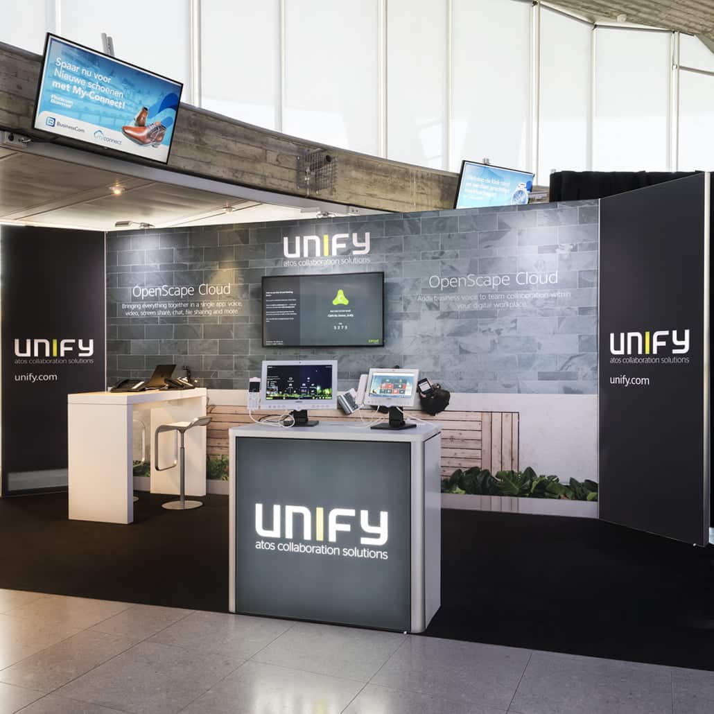 Door de keuze van uniforme, duurzame standbouw wordt een eenheid gecreëerd, waarbij de individuele corporate identity nog steeds te realiseren is. De constructie van de wanden zorgen voor een open, laagdrempelig karakter.