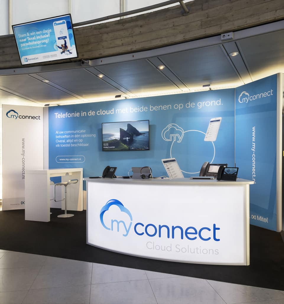 Roem Events stelde samen met Businesscom het wensenpakket voor de beurs stands samen. Uniforme standbouw met een duurzaam, open karakter. Het design team van Bridge EF vertaalde de wensen naar een duurzaam standontwerp. De presentatie van de stands werd gedaan in een virtuele omgeving. Door het ontwerpen van virtuele beursstands krijgt de klant de juiste beleving van de te realiseren oplossing van haar wensen.